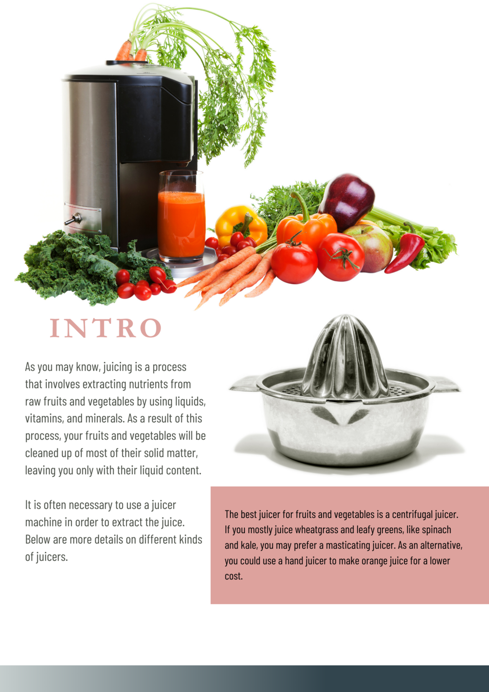 You'll get a 24 page PDF e-book filled with the healthy benefits of juicing with references at the end